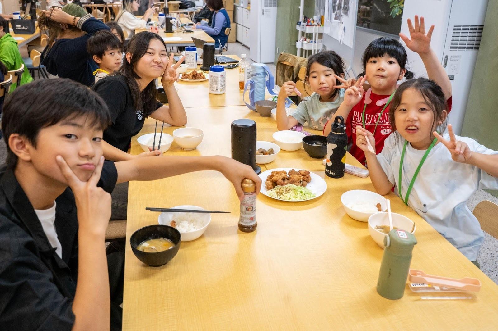 防災を考えた後は、みんなでご飯!今回は全国こども支援センター・むすびえからいただいたからあげ粉を使って、揚げたてのからあげを食べました!