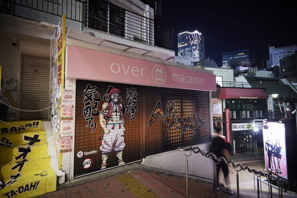 なんと、渋谷駅周辺に「鬼」が出現! 店舗閉店後のシャッターに夜間、今回の映画で主人公の敵として登場した猗窩座を始めとした鬼たちが!!