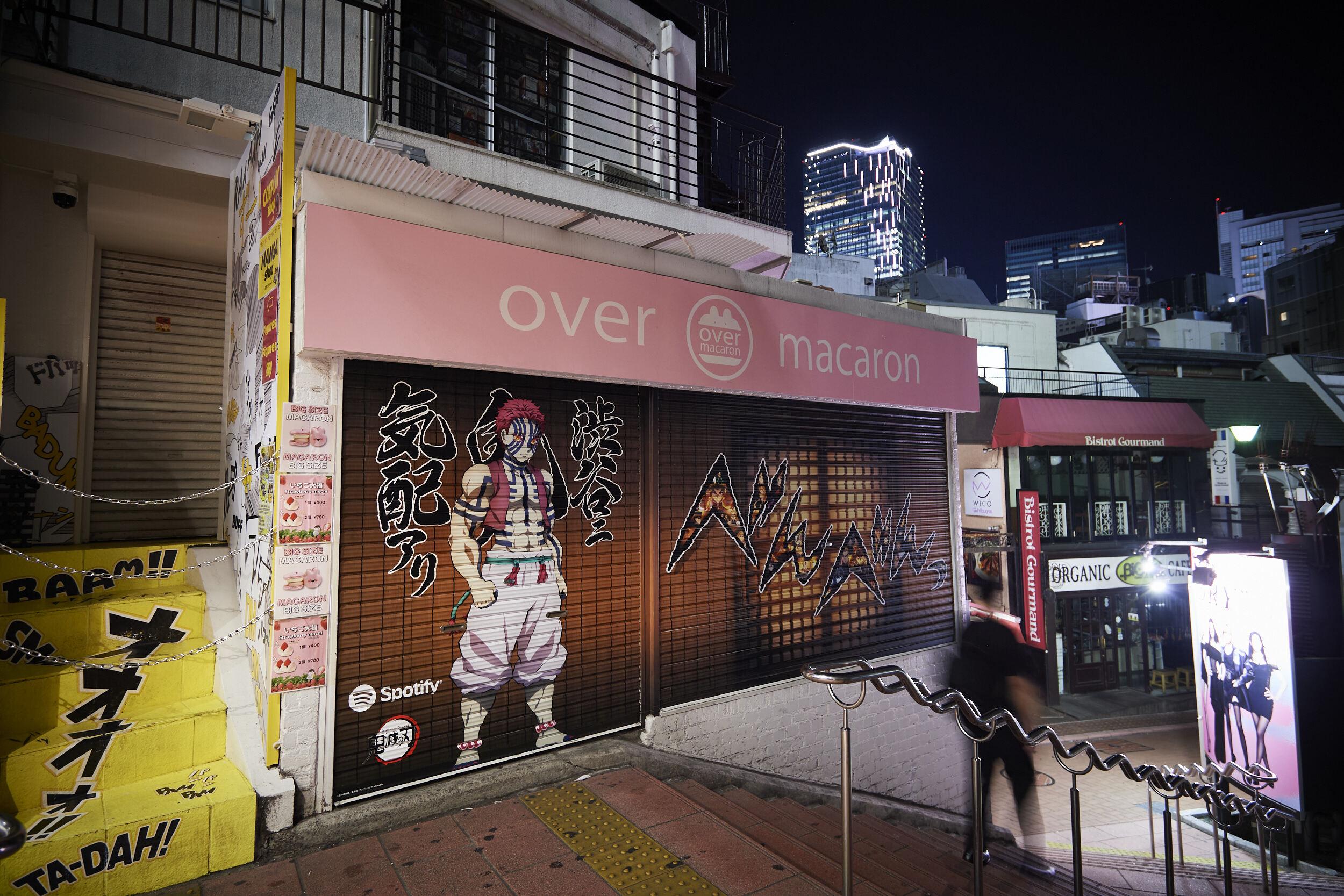 渋谷に鬼の気配あり!鬼滅の刃× Spotifyコラボのシャッター広告が出現