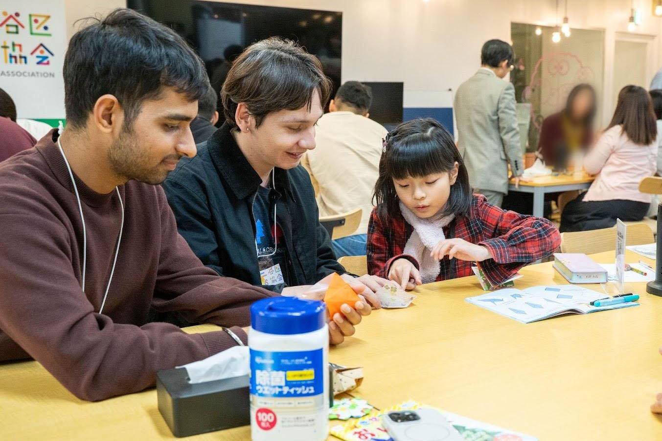 今回のこども食堂では、たくさんの外国人留学生と、渋谷で働く大人達と昭和の遊びを通して交流を深めました。