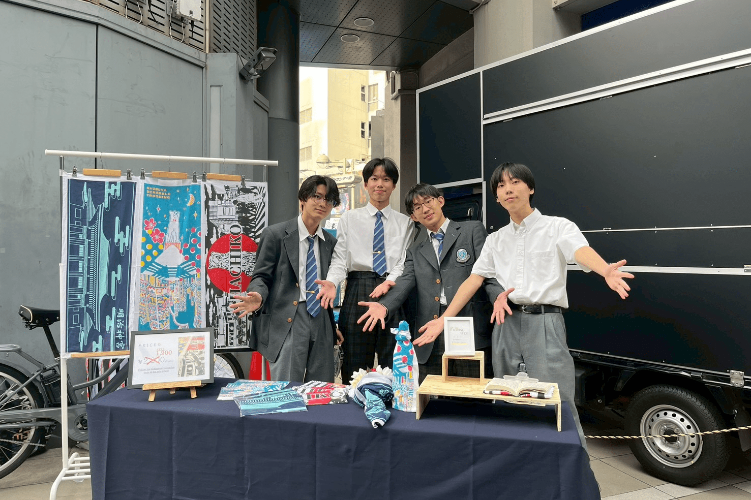 渋谷教育学園渋谷高等学校に通う現役高校生チーム「しぶず」が挑戦しているのは、金融知力普及協会主催のリアル起業体験プログラム「リアビズ」。書類選考80組から8組に選ばれた彼らは、30万円の融資を受け、渋谷の名所をデザインした「てぬぐい」の企画・販売に取り組んでいます。