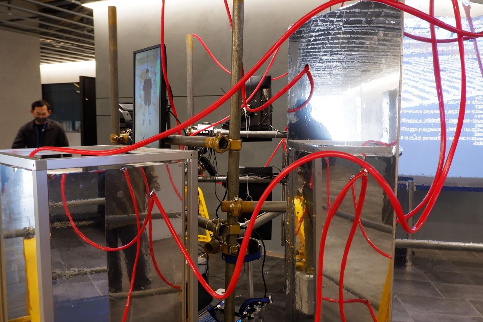 作品は、物理的な展示に加えて、人によるパフォーマンス、VRヘッドマウントディスプレイの映像を組み合わせた、リアルアートとデジタルメディアを複合的に鑑賞するインスタレーションとなっています。