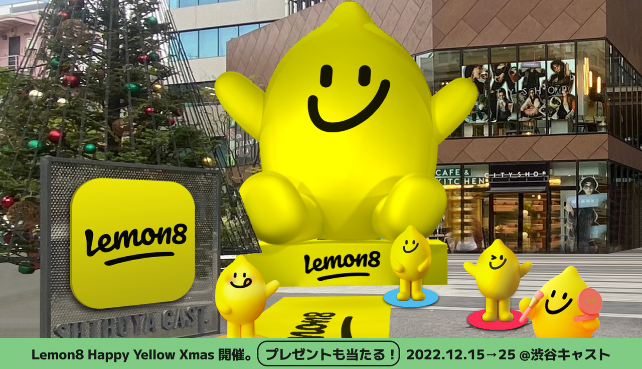 毎日に、ハジける発見が出来るアプリ「 Lemon8(レモンエイト)」は、2022年12月15日(木)〜12月25日(日)までの間、渋谷キャストでクリスマスイベント「Lemon8 Happy Yellow Xmas」を開催します!